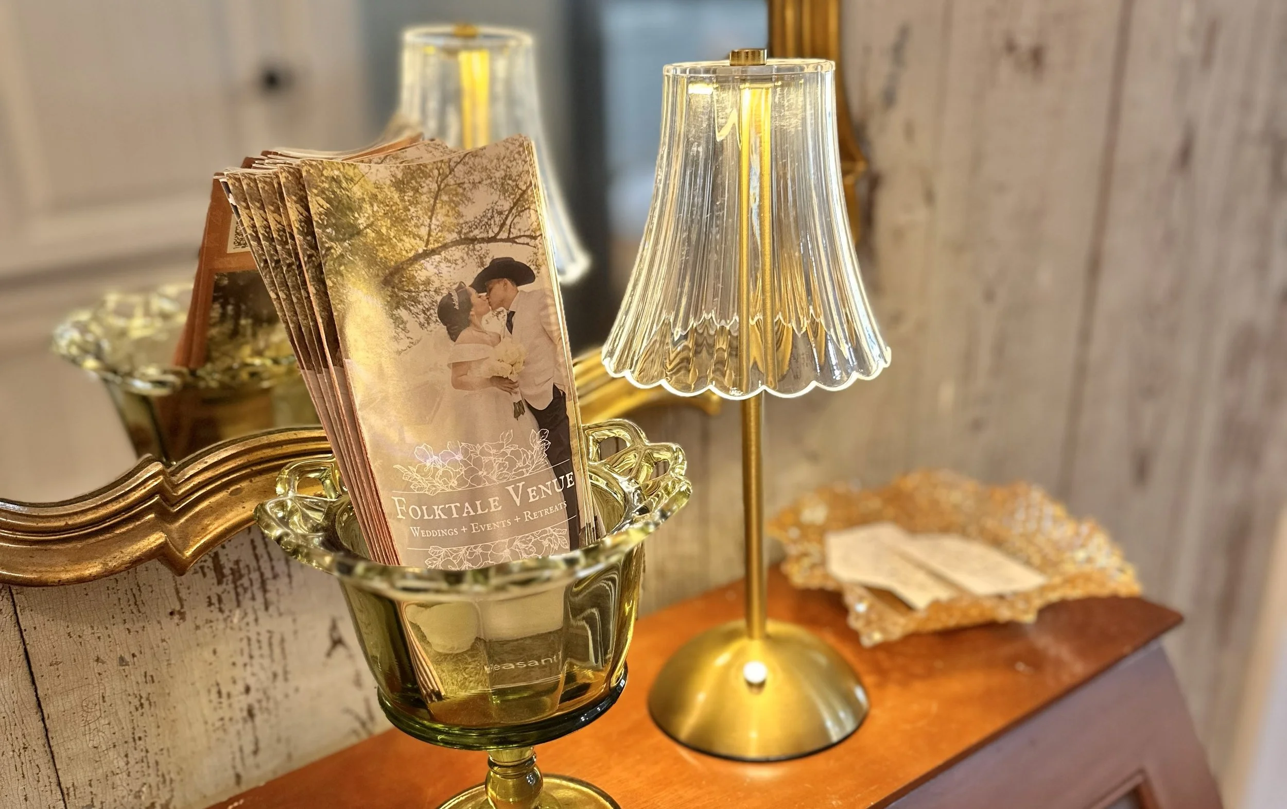 Our inventory of decor is an ever evolving collection of both eclectic and uniform styles to supplement your most special day. Our decor is free for Folktale brides to use. We also travel for off-site decor rentals, tablescapes, and florals. To view the 100+ page Look Book & Decor Catalog, click below.