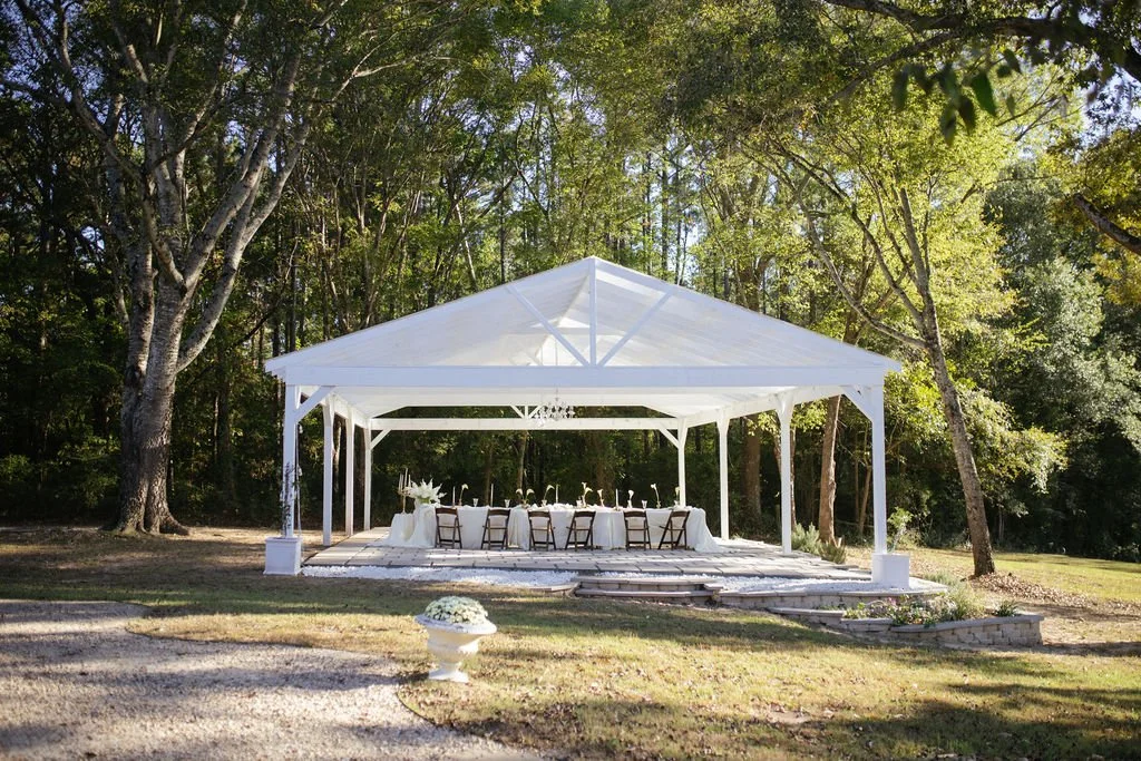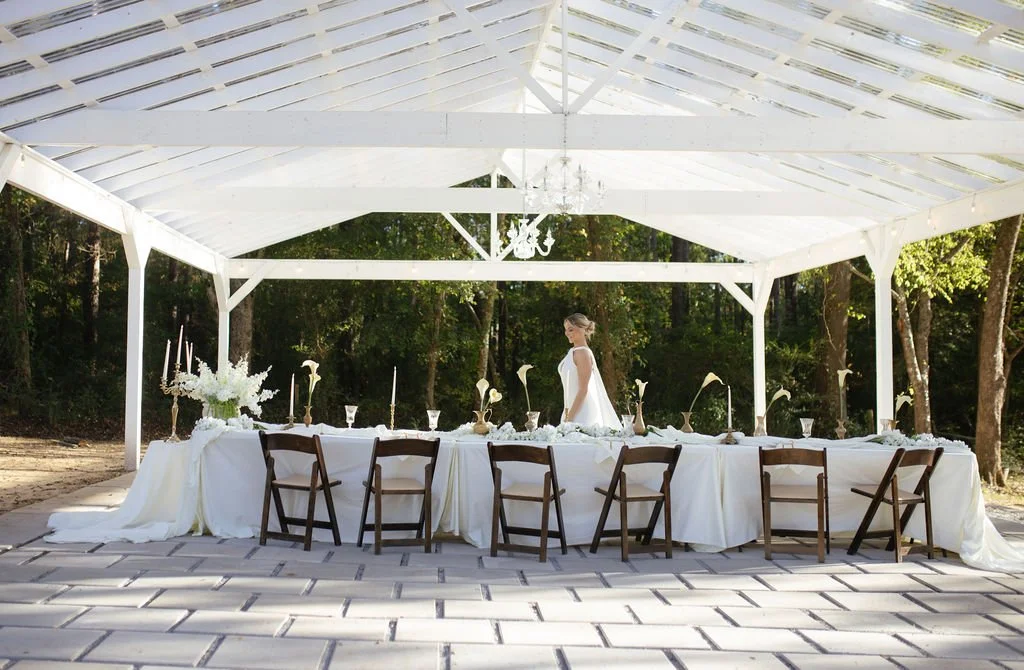 The Eden Pavilion is a 1500 sqft open-air, greenhouse style pavilion for those hosting their weddings and events at our Farmhouse & Gardens event space. Weather can be tricky but your outdoor wedding planning doesn’t have to be - we’ve got you covered. More details below!